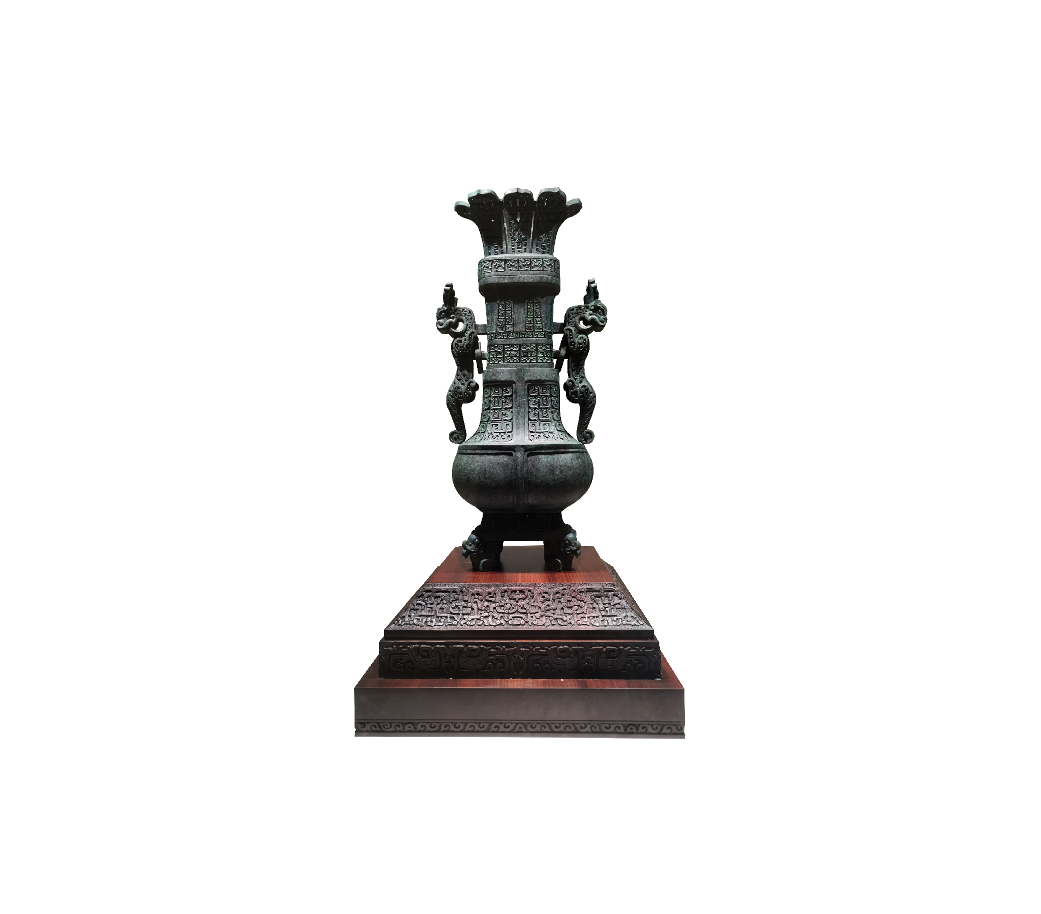 翡翠雕仿蔡侯蓮瓣蓋銅方壺