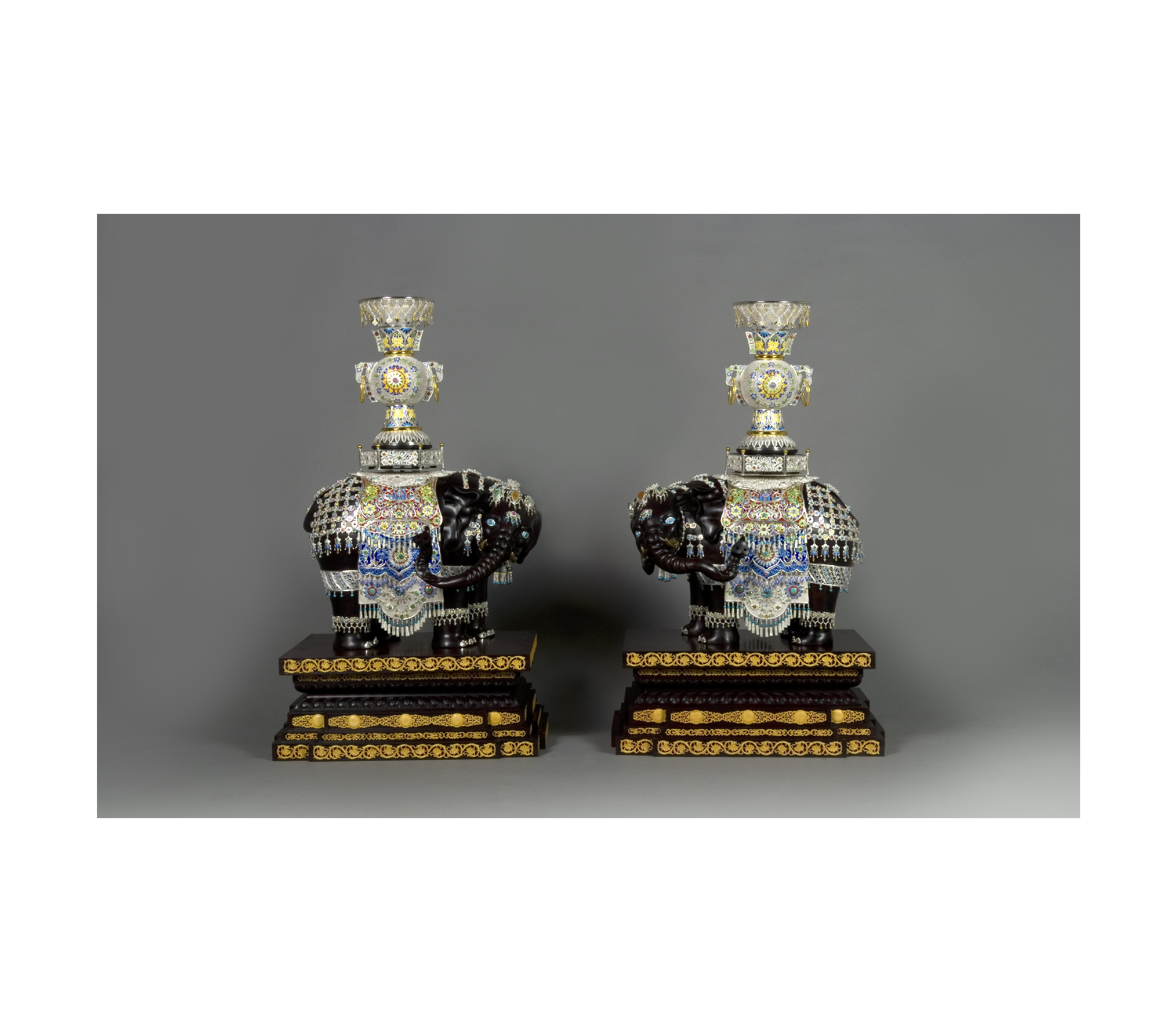 紫檀木雕鑲寶琺瑯金銀花絲太平有象擺件